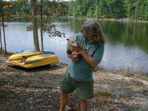 During my first year of keeping possums I was in Michigan working in a large year 'round camp, and was the proud owner of 6 beautiful subadult possums, until one morning I looked to see there was only five! At first I suspected theft or escape, but they were in a steel mesh, locked cage! This was a cause for mystery....... that was until I noticed a 1½ - inch section of jaw bone (with a few teeth still attached) laying just outside their cage. Mystery solved! I realized it's a "possum eat possum WORLD" out there, and over the years I have "lost" several others as well!