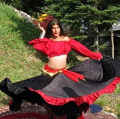 (1) Georges and I in Montreal. (2) An exotic belly dancer entertains the crowds at a small gathering near Cabano, Quebec.