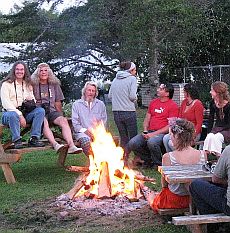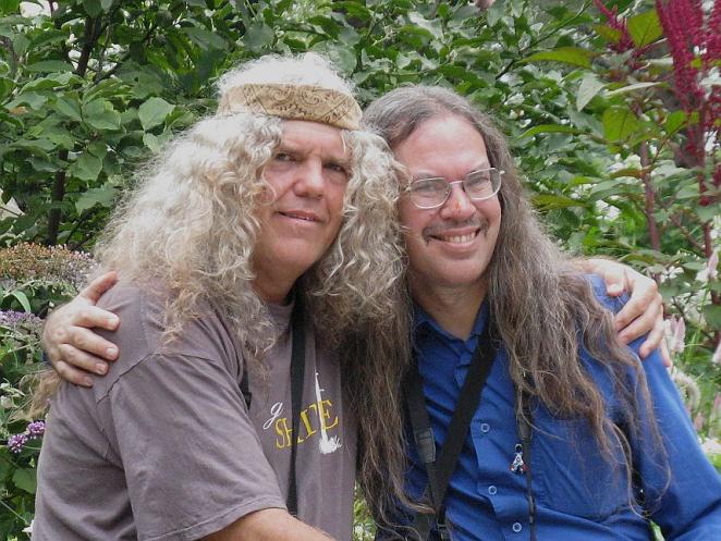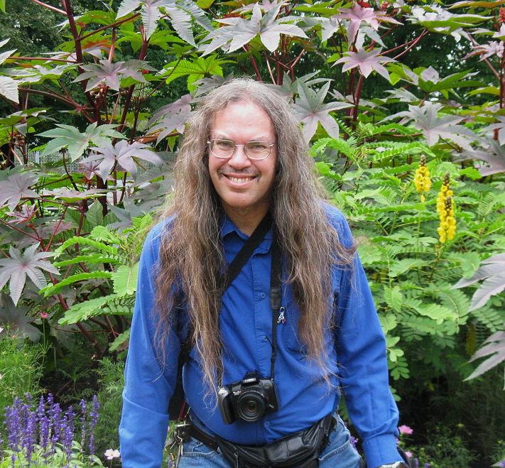 (1) A really great garden party! We're here with a group of fun folks...... pretty much in the middle of a garden...... in the middle of nowhere! (2) Georges, with Castor bean growing in the background.