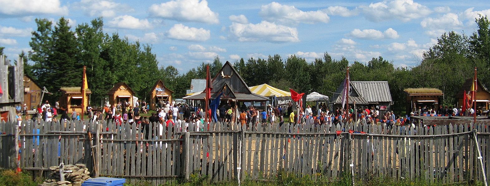 (1) An overall view of the main event-area of the Renaissance festival we went to. (2) A cool picture of Georges next to a small lake with lots of wildlife,