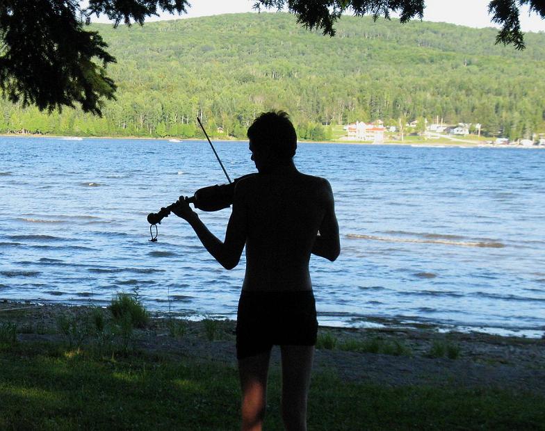 (1) This violinist fiddles next to a Northwoods lake, somewhere above the State of Maine. (2) This abandoned road "in the middle of nowhere" was the perfect place to get butterflies, as seen on the previous pages.