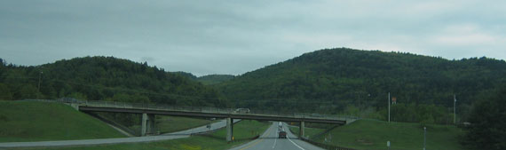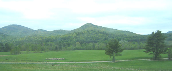 After seeing some sunshine near Montréal, it wasn't long before I returned to rainy skies. Also the flat land in that area soon gave way to some more mountains.