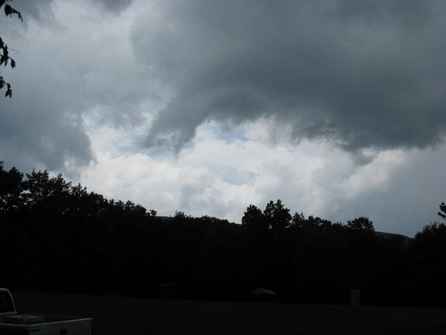 An approaching rotating cloud. This one came in my direction from the East (moving West), and it seemed like it was going to form a tornado.........