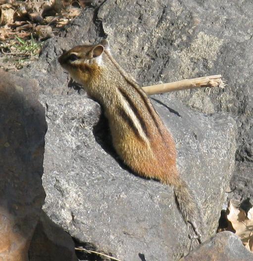 Here a chipmunk pauses to enjoy a warm, sunny rock!