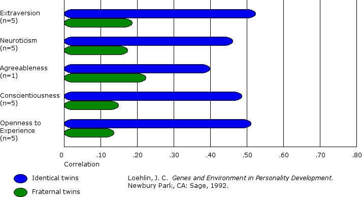 Buss and Plomin asked mothers of twin babies to fill out questionnaires about their babies’ behavior and personality. Some babies were identical and others fraternal. Using statistical techniques similar to factor analysis, they separated out which descriptions were more likely genetic from which were more likely learned. They found four dimensions of temperament: