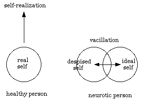 Horney had one more way of looking at neurosis -- in terms of self images. For Horney, the self is the core of your being, your potential. If you were healthy, you would have an accurate conception of who you are, and you would then be free to realize that potential (self-realization).