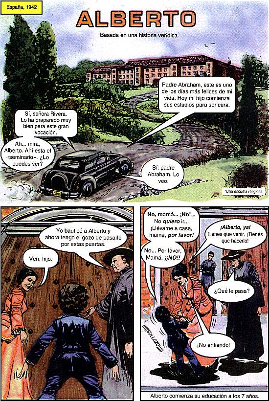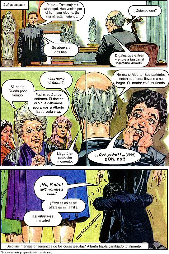 Y luego, después de esto, la madre superiora me conduce en otro cuarto o, mejor dicho, ella abre la puerta y yo tengo que ser enviada en aquel cuarto. Y cuando entro a aquel cuarto vi algo que nunca había visto antes. Yo vi un sacerdote catótico romano vestido en un habito sagrado. Él caminó hacía mi y cerró su brazo en mi brazo, lo cual él no había hecho en la primera parte de mi vida en el convento. Yo nunca tuve un sacerdote molestándome de alguna manera. Ninguno de ellos había sido descortéz conmigo en esta parte de mi experiencia en el convento. Pero aquí está ahora. Y, por supuesto, yo no entendía de que era todo esto, y no sabía que en el mundo el hombre realmente esperaba de mi. Y, usted sabe, yo me retiré de él porque me sentí terriblemente insultada, y dije "sinvergueza". y él se enojó mucho, y "uh", inmediatamente la madre superiora debió haber oído mi voz porque ella salió inmediatamente y dijo: "OH", (y ellos me llamaron por mi nombre clave) ella dijo: después que estés en el convento por un poco de tiempo tu no te sentirás en esta forma. El resto de nosotras se sintió de la misma manera que tu haces, y tú sabes el cuerpo del sacerdote es santificado, y por lo tanto no es pecado para nosotras dar nuestros cuerpos a los sacerdotes"