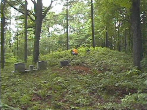 This cemetery is located in Buchanan County, VA on Rt. 600 (Hurricane Creek)in a holler behind the home of Keithel Breeding. From Mr. Breeding's home it is about a mile back to the top of the mountain. This place is known to local folk as the "Marion Hale" home place. This cemetery was visited June 12, 2002. The double tombstone seen in this picture is that of George and Abygail Hess. The one seen to the right of George and Abygail is their eldest son Elmer. Leander "Lee" Noonkester's is the one I am kneeling in front of. All information enclosed in brackets is added by your transcriber Glenda Osborne.