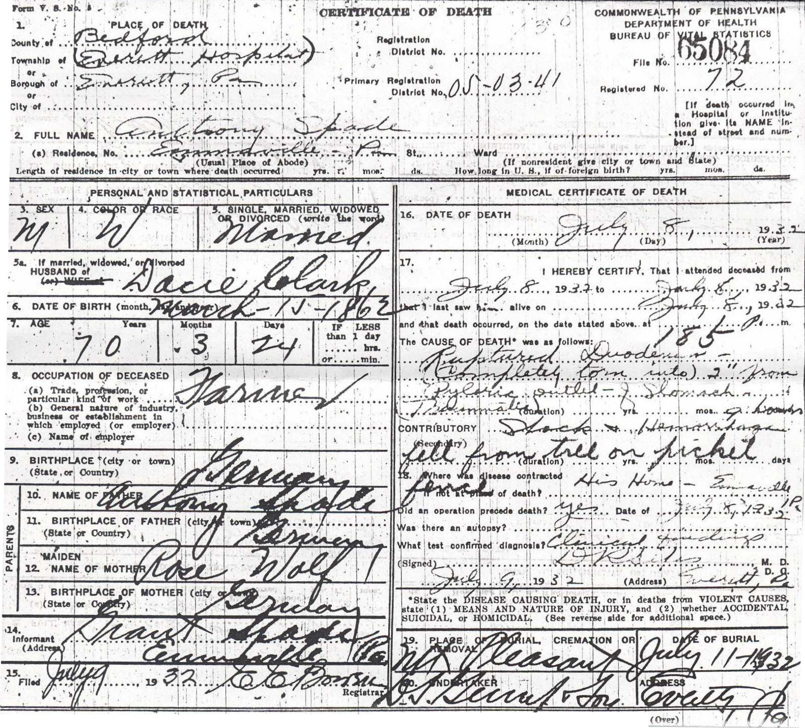 Back to Descendants of Anton Späth (a.k.a. Anthony Spade) and Rosina Dorothea Wolf Spade