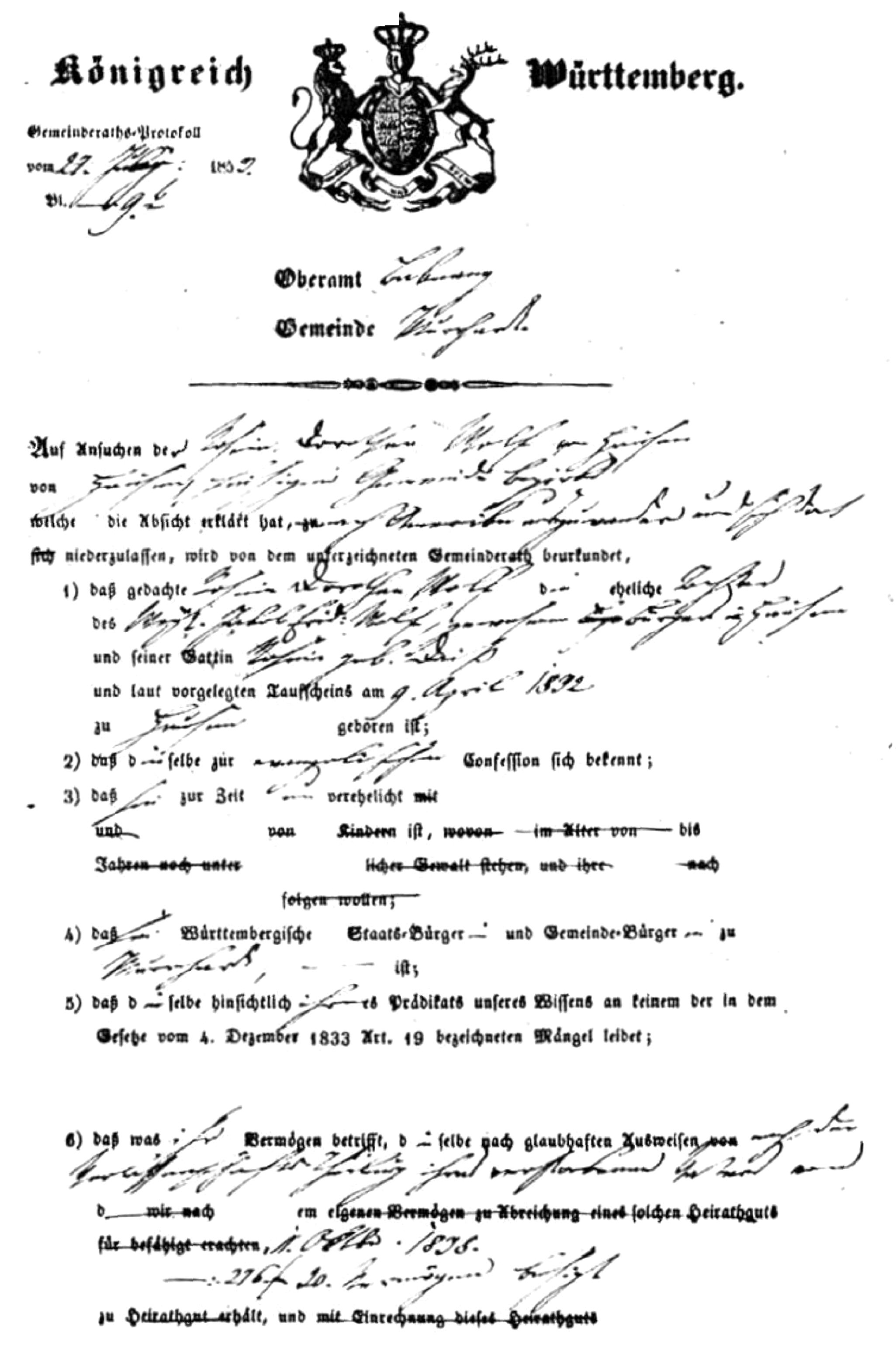 Translation of the Application for Emigration of Rosina Dorothea Wolf