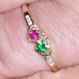 ENGAGEMENT RING - Teddy was thoughtful & romantic by buying this ring with joining hearts - one with his birthstone a Ruby & one with my birthstone an Emerald.