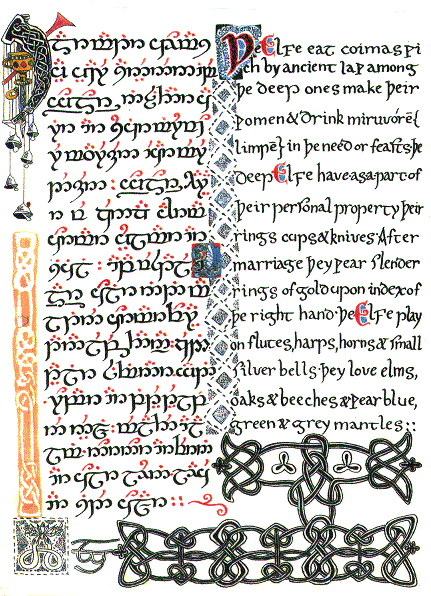 The Eldrin still use a runic alphabet in their written works, known as the Kirth. Though it is similar to the formats to other runic alphabets used by numerous cultures, the Eldrin are not willing to teach their version to outsiders; instead they will use other written languages to communicate with foreign cultures.