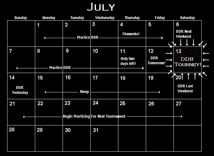 "Looks like the tournament is ready to promote! Thanks to several of you players who have met with me in person to make suggestions and educate me about DDR, and also to the players who have offered ideas in the DDRFreak forum. Special thanks to I Love Sports, A&S Hats, and Dixie's Dollhouse for donating prizes to sponsor our tournament."