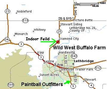 From Lethbridge? looking for a place to play? Try our new indoor arena just outside of lethbridge. Don't have your own marker or gear no problem we have it available for you. We have a heated areana with a speedball feild for you and your team to play or practice on as well as a staging area with refreshments and snacks for sale. Also don't forget your cd's we can play them inside the arena at no extra cost.
