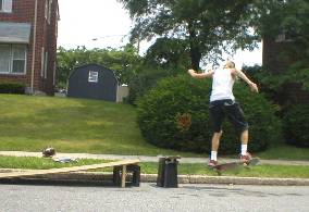 This is a pic of me doing an ollie over some shit off a homemade ramp that Paul and I built.
