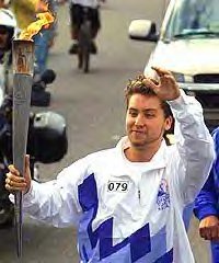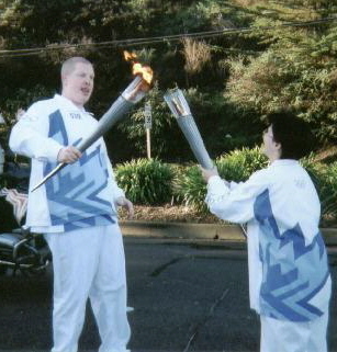 Kevin Passing the Olympic Torch -- January 15, 2002