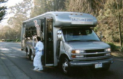 The twelve of us got on the bus and headed towards the park. It was there that we realized that Flame was being driven across the Golden Gate Bridge and that we were the first ones to carry it after that. At the park, there maybe a hundred people all yelling for us. It was very inspiring. As we sat in the bus, we talked about our experiences, listened to the music and watched the highlights of the past weeks of the journey of the Flame. Things seemed to slow down once we started rolling. Mary and I had driven the route the night before and I was only about a mile from the starting point and it seemed to take forever. When it was finally my turn, I took my torch and held it. It was top heavy like they said, but not excessively so.