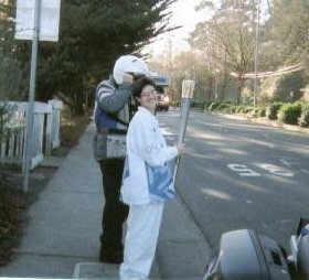 So I am travelling northbound on Bridgeway Blvd. I start at the "Speed Limit 35 mph" sign near Nevada St. and I end at Harbor Dr. My relay technically starts at 8:22am on Saturday, January 19, 2002, but I have to be at the police station on Locust St at 6:34am. Why you ask? Because they "turn a 3 minute run into an Olympic event" (their words, not mine). Real reason why? I think they need to train me. The torch is 33 inches long and weighs 3 and a half pounds. I am only 60 inches tall. So the torch is half my height!
