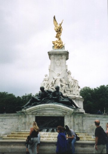 Mom, Uncle Howard, and Nicole in front of the fountain in front of Buckingham Palace.