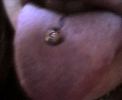 This is my tongue piercing...I got it done (professionally) the beginning of August...I needed to do something and I was trying to avoid cutting. Unfortunately, it didn't hurt. I was really disappointed. I don't think anyone really understands why I did it. My mom just assumes it's sexual. I just wanted it done though...I am so sick of her comments about it... |