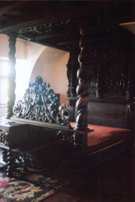 A cool canopy bed, and a really narrow secret staircase they found just recently, we got to go through it w00t