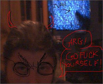 This is a pic I made for 2 old friends of mine I used to chat with. What worries me is that I haven't heard from the girl since I sent this to her. /=( I hope I didn't frighten her away. I can almost picture her looking at it going, "OMG does my face really look like that?? What a jerkoff!"