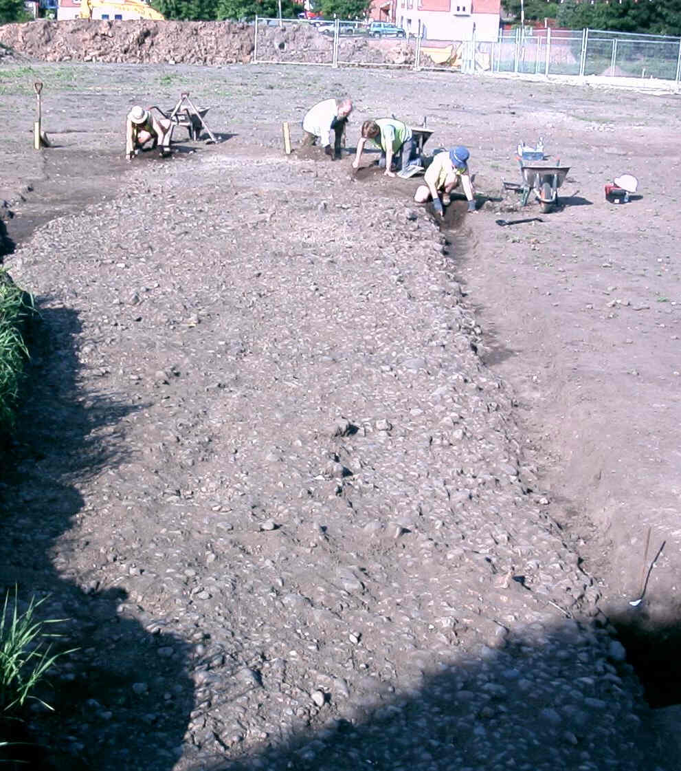 Traces of the foundation trench for a timber framed wall in