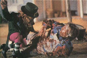 Most Leprechaun fans agree that the first movie is the least impressive of the series, but it's lots of fun nonetheless. The plot is extremely simple - "killer Leprechaun terrorizes farmhouse" pretty much sums it up. The movie gets off to a decent start, but then comes a long dull stretch where the Leprechaun is kept hidden in the shadows while the rest of the cast indulges in a lot of unnecessary, repetitive dialogue. This is a big mistake - the Leprechaun is the only thing that makes the movie watchable, and it's no fun listening as Jennifer Aniston whines and that obnoxious kid mouths off. But the Leprechaun eventually comes out into the open and then the entertainment begins, with snappy Leprechaun dialogue and rhymes, twisted Leprechaun games, assorted sight gags, and the occasional bloody murder played for laughs.