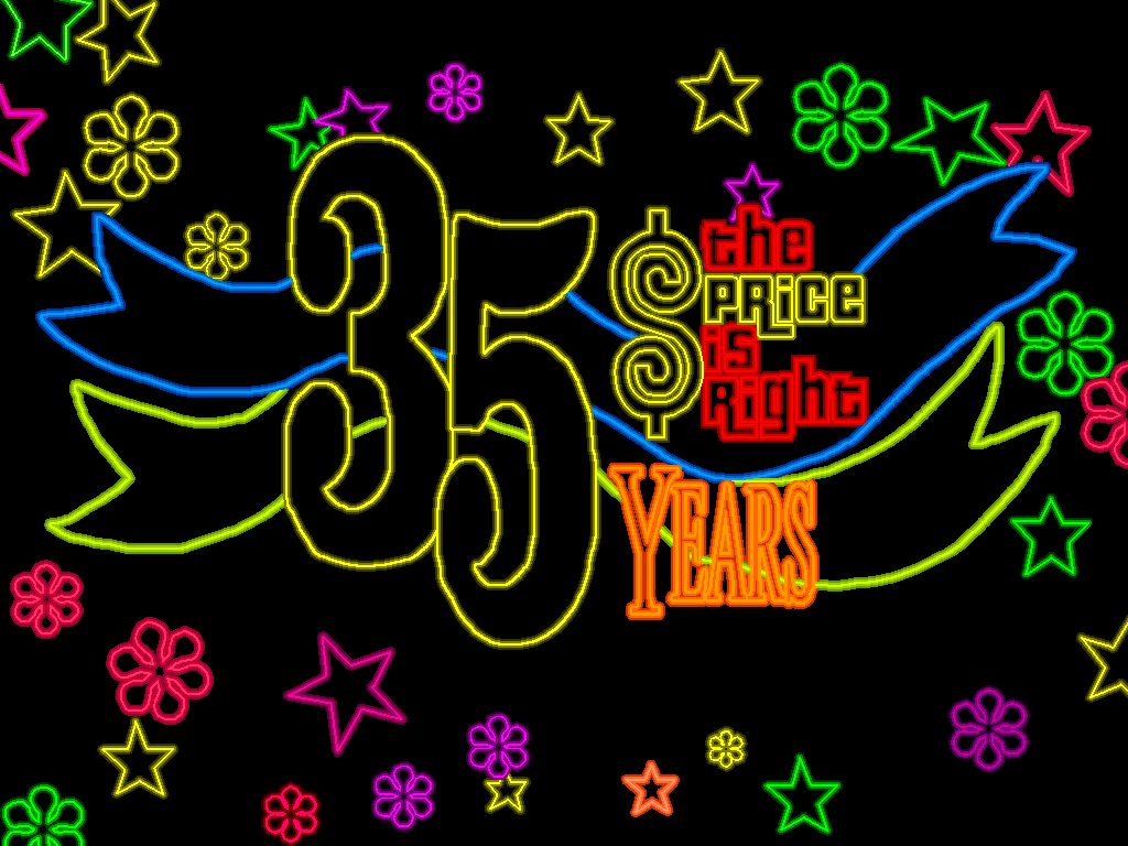 My artist rendering of the 35th Anniversary Logo, looking like a neon sign with stars and asterisks around the logo.