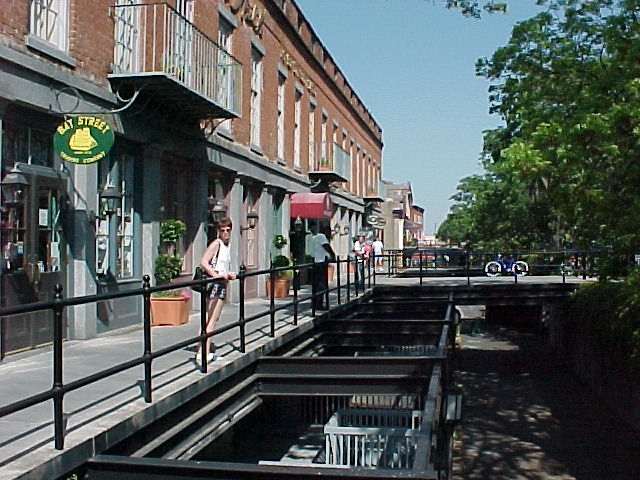 As we strolled along the old wharves on River Street, sampled pecan pralines, admired the magnolia blooms, and watched a freighter maneuver up the river with assistance from a tug, we talked about the new hotel complex and developments across the river. Then we climbed the winding steps to Bay Street and its war memorials, historic markers, Cotton Exchange and over friendly squirrels.