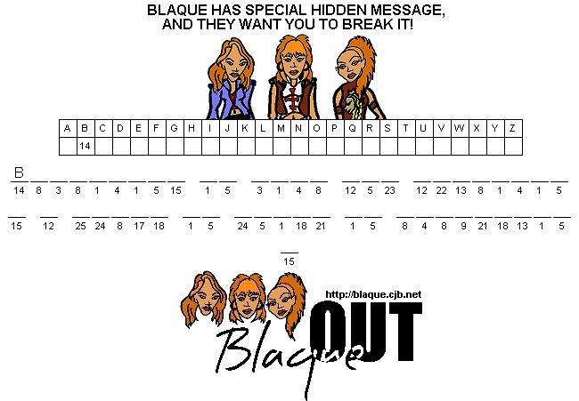 BLAQUE OUT QUIZ! BLAQUE PAPER DOLLS! BLAQUE CODED MESSAGE! BLAQUE CROSSWORD PUZZLE! BLAQUE MAZE!