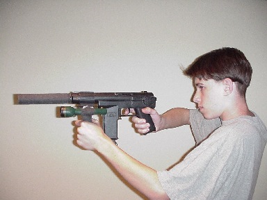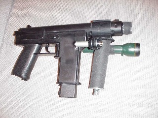 This is my KG9 Custom without the silencer. The custom front handgaurd holds the tactical flashlight and the laser sight.(one on each side)