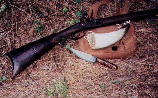 This interpretation was beautifully crafted by Ryan McNabb of Ooltewah, Tn., and represents a very finely made "poor boy" rifle of the very early 19th century. This rifle is crafted following the old school methods using no power tools except for an electric drill to open the touch hole. Ryan can be contacted by e-mail at Ryan McNabb.