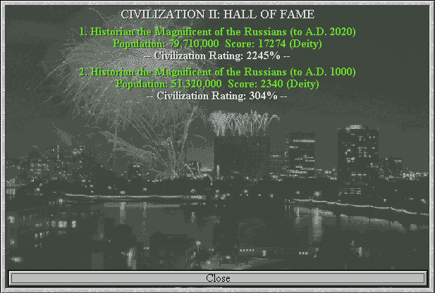 Today I placed here one screenshot only. There are scores for years AD1000 and AD2020. Later I'll tell you more about this fantastic game.