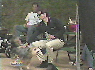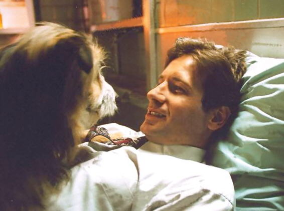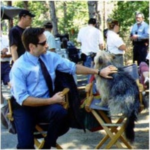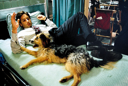 Blue and David relaxing on the X-Files set