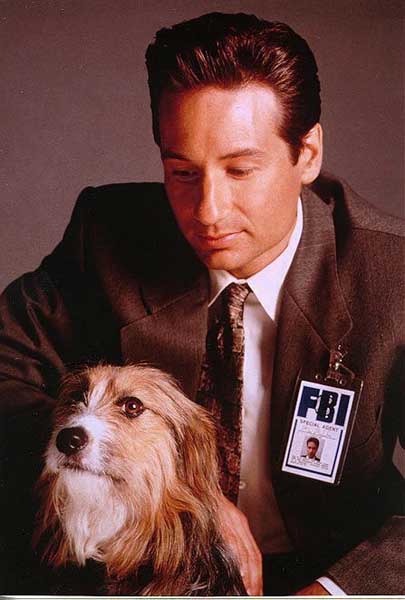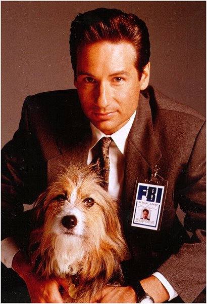 David, as Mulder, posing with Blue