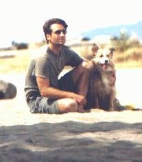 Blue and David sitting on the beach