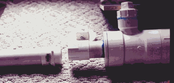 Step five: Glue 3" x 2" reducer coupling into other end of the Short Turn Reducing T-Y |