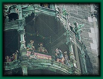 Munich is home to the most famous glockenspiel or carillon in the world. We rushed to the Munich Rathaus just in time to hear it. It is like a giant music box...the figures turn putting on a magical show as the bells chime....beautiful!There were many people there...making it rather hard to get a good shot...and the figures were protected by a screen...
