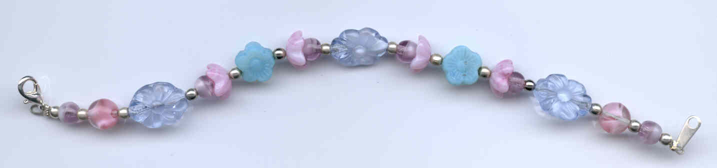 Flowery bracelet that I made back in 9th grade and restrung recently. I like it.
