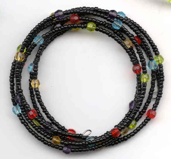 Memory wire bracelet: black seed beads and colorful fire-polished glass beads. Six coils.