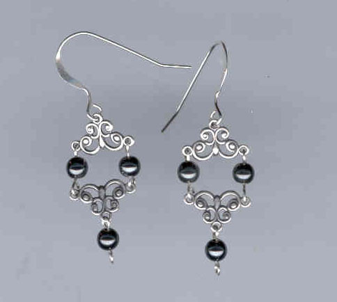 Sterling earring wires, silver-plated connectors and hematite beads. Sold for $6.