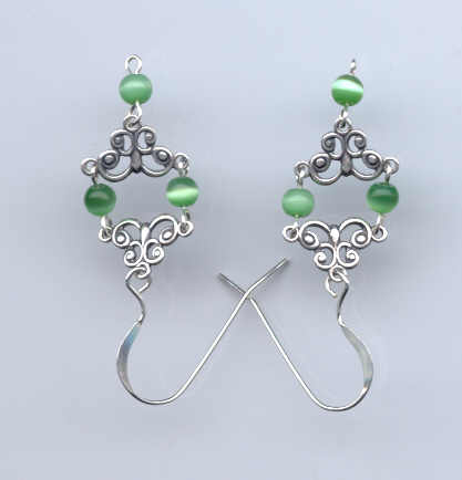 Variation on the theme: green cat's eye beads used instead of hematite. Sold for $6.