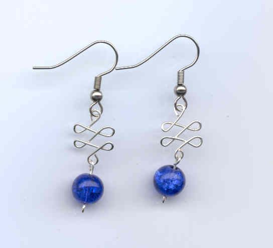 Crackle beads and twisted wire. These earrings are trying to be Celtic, you see.