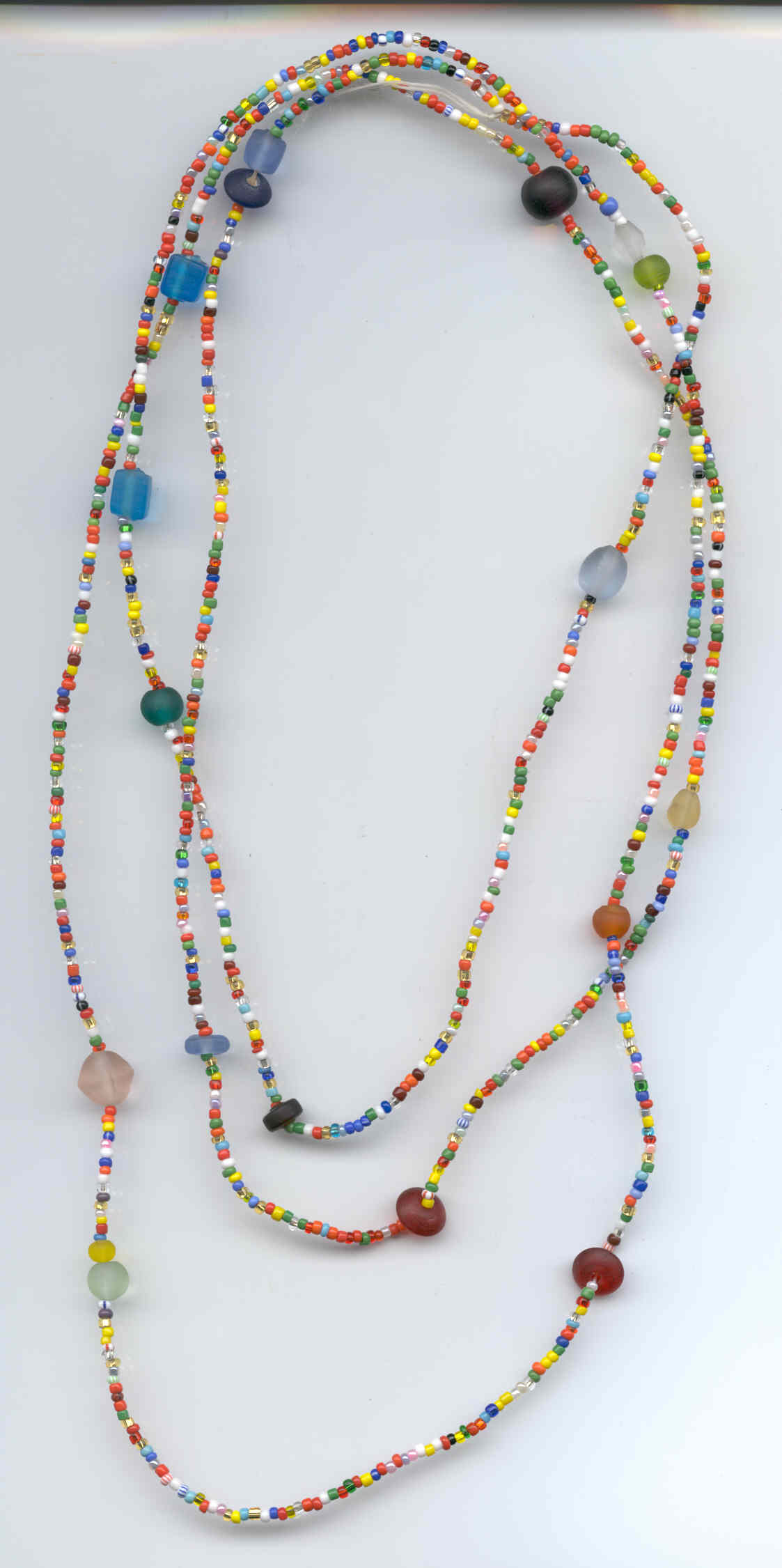 Hippie beads! I was using up my extra seed beads (I have LOTS) and cheapo glass beads. It can be work as one strand or many, and of any length. It's cool, I tell you, it's cool!