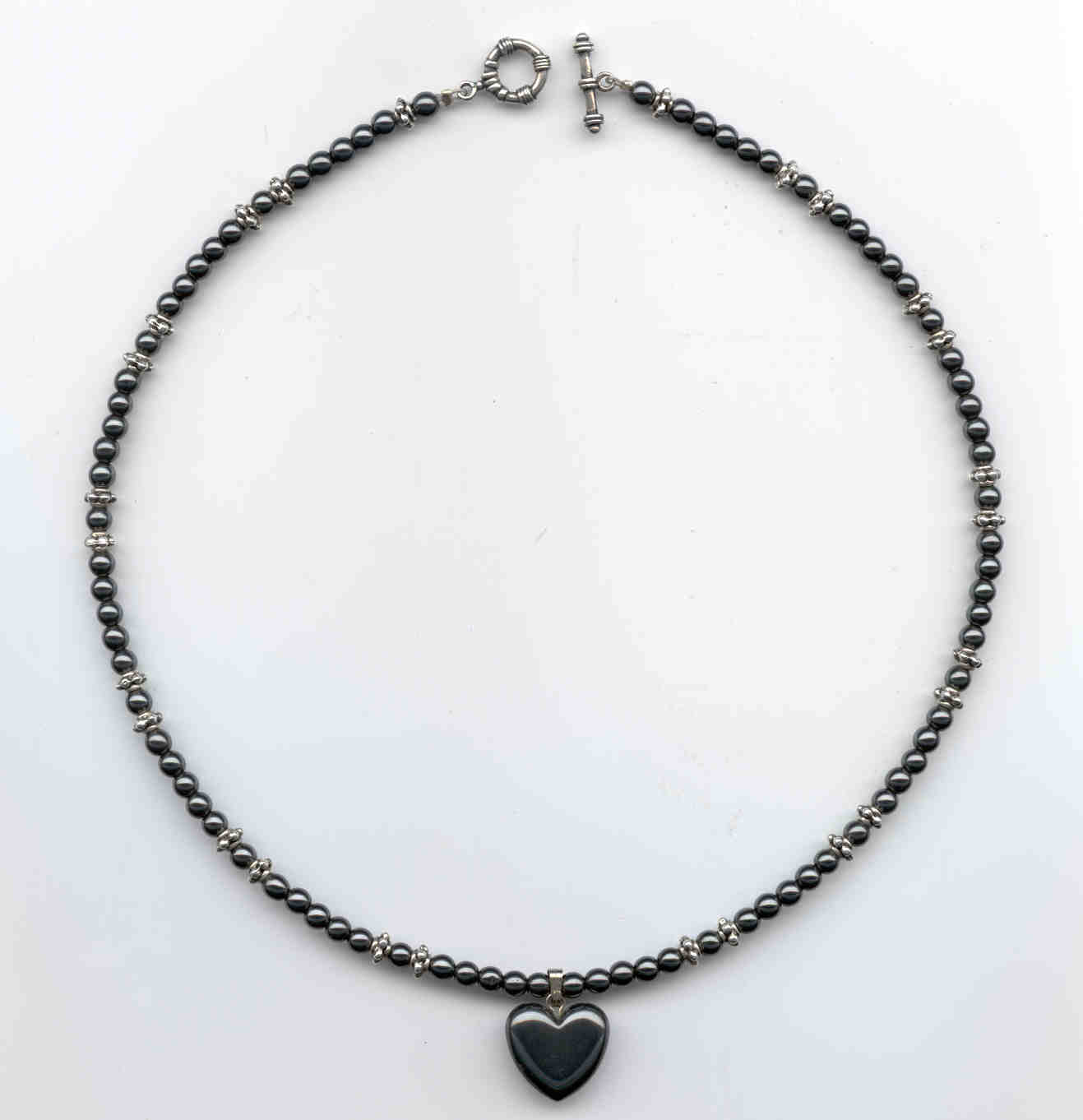 Hematite necklace built around the heart pendant Russell gave me for our 6-month anniversary. This necklace is incredibly precious to me: the pendant is from Russell, the beads are from a very good friend, and the clasp was bought by my daddy on our last family vacation.