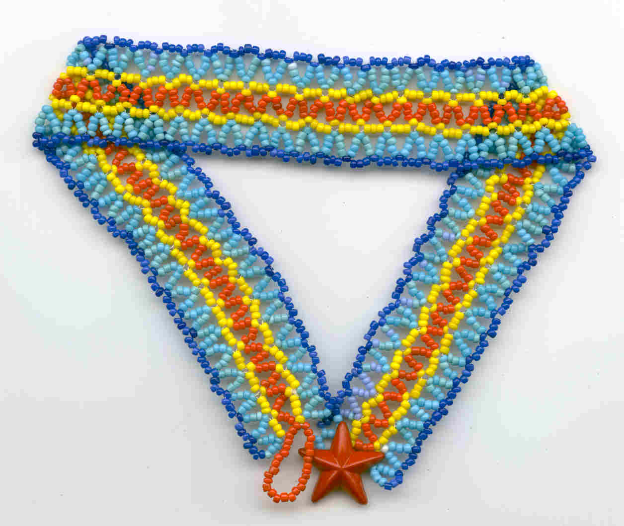 My first chevron-chain practice piece. The beads are kinda crappy, but I think it turned out well otherwise. And I finally found a use for my star button.