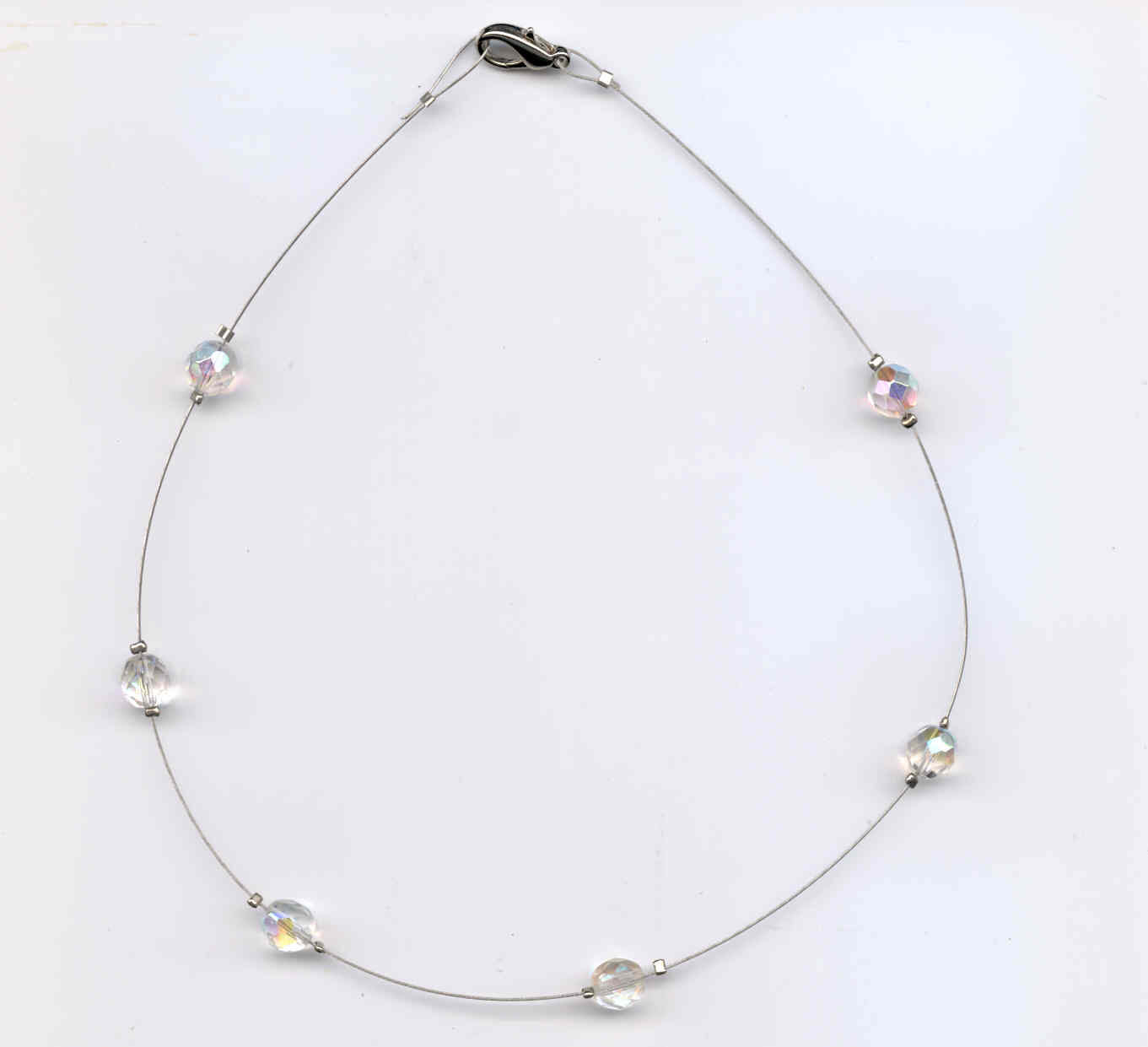 Illusion crystal necklace. Tigertail, crystal fire-polished beads, and crimpers.