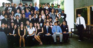Arthur, at right in white, with his Year 2002 West Island School class.