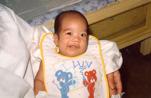 Taken January 29, 1999: Girl in orange is Sasa (Robbie's girl). English girl is Rosanna (Heidi's girl). Tito cuddles Joaquin and Justice sits on Mum's lap.